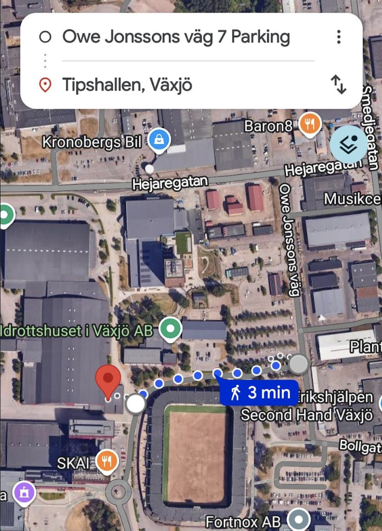 Parkering: Enklast på Owe Jonssons väg 7 (2 tim fri parkering med Parkster). Det går även att parkera mellan Icon och Spiris i mån av plats. Hitta hit: Jag finns vid den blå dörren till höger i Tipshallens låga tillbyggnad, i samma lokaler som Idrottspsykologiskt center.